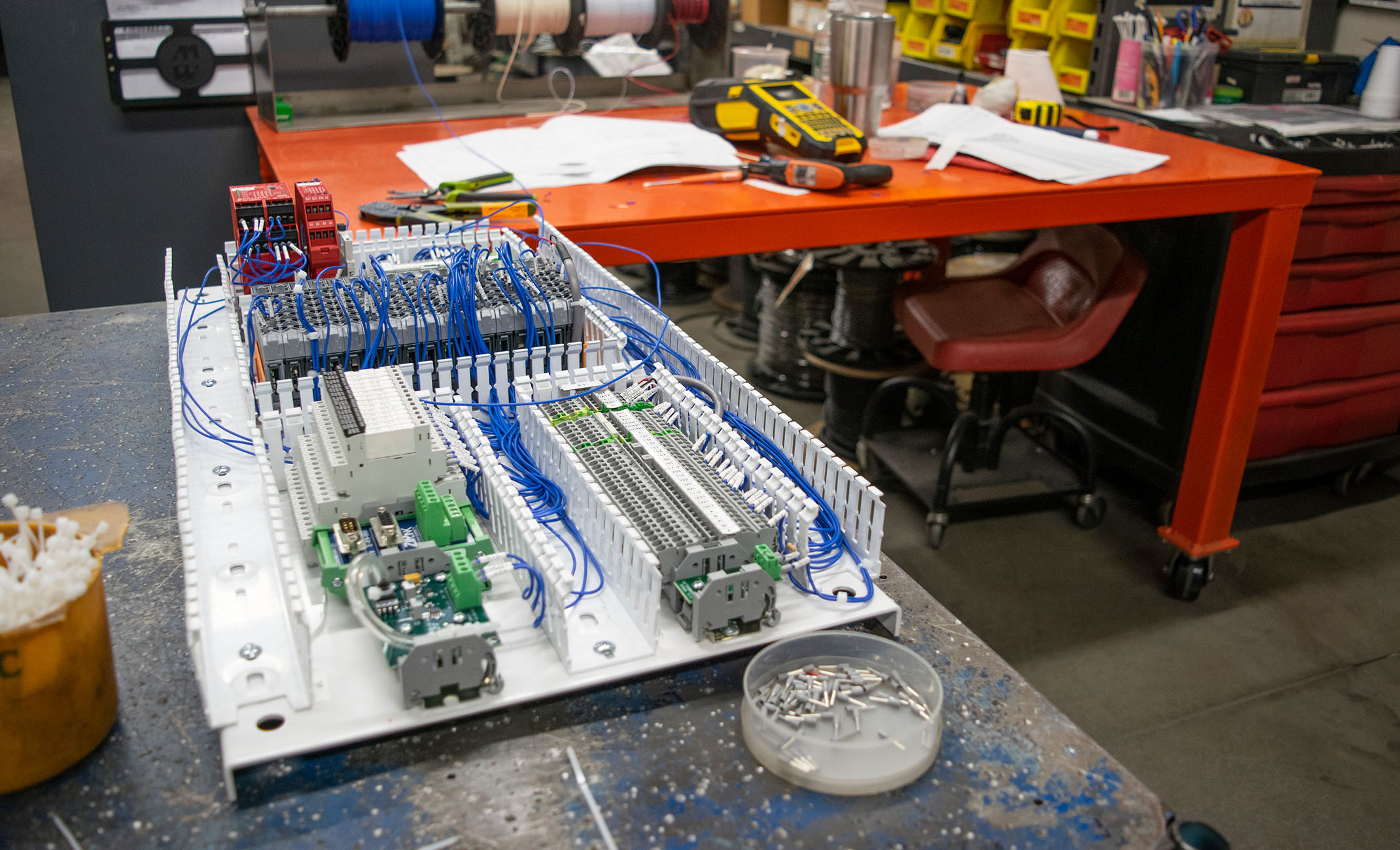 We have a specific area dedicated to assembling all of our ETL certified electrical panels. This photo shows an electrical panel being assembled before being installed into its enclosure.