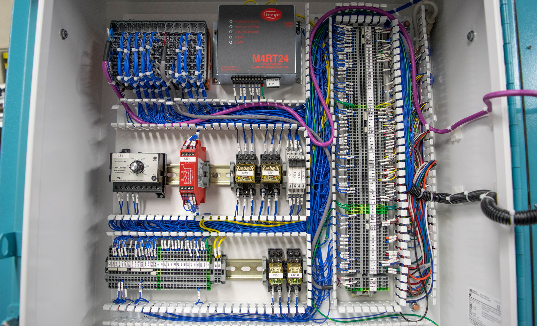 We have a vast experience in assembling electrical panels. This is one example of a panel assembled in house and then installed and tested on a completed machine.